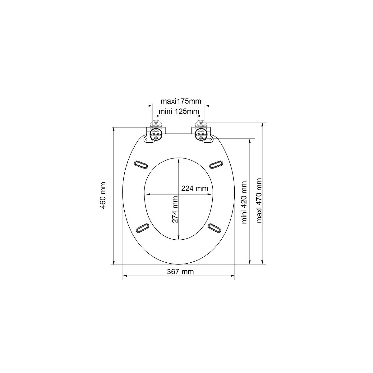 Abattant WC NATURO en bois compressé Donnez une touche naturelle à vos WC ! Disponible en 3 décors (chêne clair, béton clair ou marbre blanc), pour un style intemporel, contemporain, ou même chic ! Naturo reste néanmoins fonctionnel, grâce à ses charnières soft-close silencieuses. Cet abattant laqué est fabriqué à partir de farine de bois (haute densité) compressée. Ce matériau de qualité premium offre de nombreux avantages : durabilité optimale, contact chaleureux, facilité d'entretien, excellente résistance à l'humidité, solidité. Décor présent sur les 4 faces de l'abattant Charnières métal chromé Fixation par le dessous Fermeture progressive Adapté aux cuvettes de forme standard Dimensions : 36,7 x 5 x 45 cm Poids : 3,65 kgSpécifications techniques