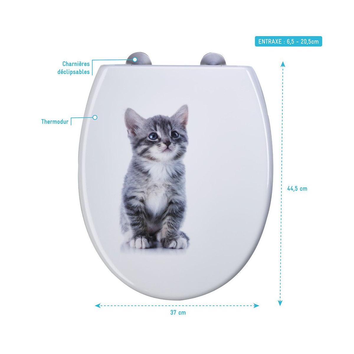 Abattant pour WC à motif Caractéristique de l'abattant : Double frein de chute Thermodur Charnières déclipsables en plastique avec cache inox Dimension de l'abattant : Largeur : 37 cm Longueur : 44,5 cm Entraxe : 6,5 - 20,5 cm Garantie 2 ans pièces uniquement Cocorico ! MyShowerRoom est une entreprise Française et toute la conception de nos produits est également Française. Ce qui est un véritable plus pour être au plus près de ses clients et avoir une meilleure connaissance de leurs attentes. Qui sommes nous L’HISTOIRE DE MYSHOWERROOM Nous avons créé MyShowerRoom en 2003 avec l’ambition de démocratiser le design et l’innovation dans la salle de bain pour faire de cette pièce un lieu à part entière, un véritable lieu d’histoires à vivre pour toute la famille. Nos cabines de douche et meubles de salle de bain dans l’ère du temps à des tarifs très accessibles. Nos nombreux brevets garantissent l’originalité de notre gamme de cabines de douches. Et nos ingénieurs mettent en œuvre tout leur savoir-faire et toutes les technologies innovantes au service d’une simplicité d’installation et d’utilisation incomparable pour tous. ÊTRE BIENVEILLANT AVEC NOS CLIENTS Notre service client a un objectif : rendre nos clients heureux. Pour cela nous veillons à répondre dans les 24h aux demandes clients. Mais aussi de toujours apporter une solution et entière satisfaction à nos clients. CONSTRUIRE DES PRODUITS TOUJOURS PLUS PERFORMANTS Nos ingénieurs, ainsi que nos équipes terrain consacrent tous leurs efforts à créer des produits adaptés à vos besoins, et toujours plus innovants grâce à nos technologies. Notre objectif est d’être votre unique interlocuteur pour tous vos projets de salle de bain. CONCRÉTISER LES RÊVES DE CHACUN Un projet de salle de bain ? Nous le réalisons ! Lieu de détente et de relaxation par excellence, la salle de bain est une des pièces maîtresse de la maison. Chez MyShowerRoom, nous mettons tout en oeuvre afin que ce rêve devienne réalité. PROPOSER UNE GAMME COMPLÈTE DE PRODUITS Nous vous proposons grâce à notre boutique en ligne une gamme complète de produits Made in MyShowerRoom pour équiper, et accessoiriser votre salle de bain. Un catalogue que nous renouvelons régulièrement avec les dernières technologies MyShowerRoom. APPORTER UNE EXPERTISE HUMAINE Parce que l’humain passe avant tout, nous travaillons avec les meilleurs experts. La satisfaction de nos clients est notre seule et unique priorité. Chaque problème a une solution, et c’est dans cette optique que nous avons mis en place un chat pour échanger directement avec nos équipes. NOTRE CENTRE LOGISTIQUE 11 000 m² d’entrepôt 7000 palettes en stock 1 800 colis traités par jour Plus de 260 préparations de commandes quotidiennes 12 quais de chargement/déchargement CONSEILS & VENTES Une équipe disponible 5 jours sur 7 pour vous accompagner dans vos achats. LIVRAISON GRATUITE Pour toute commande sur le site MyShowerRoom, la livraison est gratuite dans toute la France. UNE GARANTIE DE QUALITÉ Grâce à nos produits brevetés vous bénéficiez de produits uniques. Référence produit: 700842 Retrouvez plus d'informations produit et des conseils de montage sur le site Aurlane.