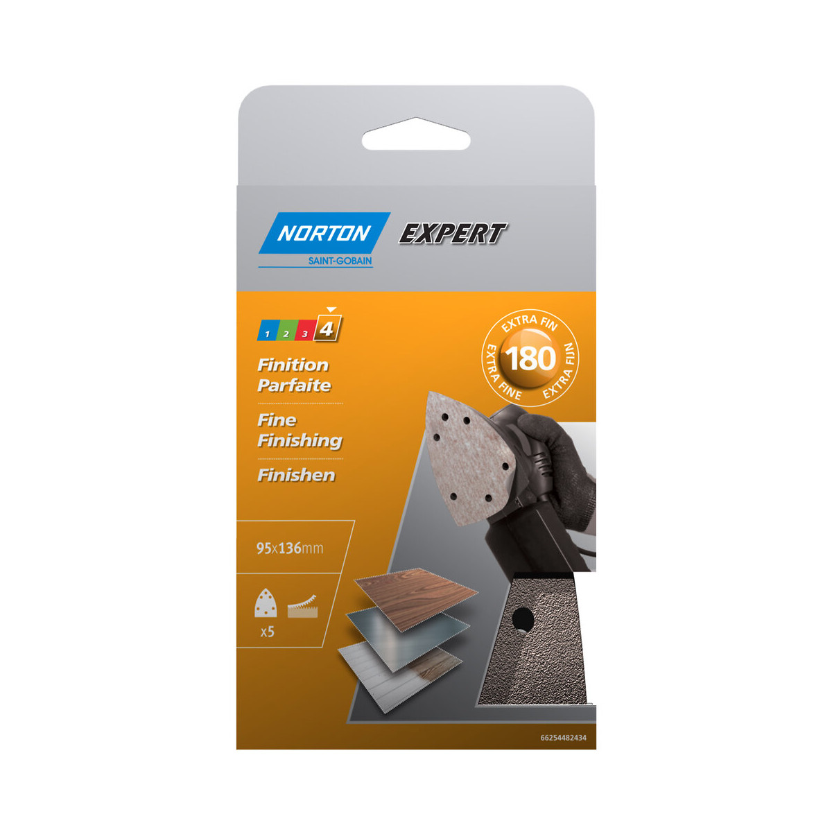 Les patins multi-ponceuses sont auto-agrippants pour un changement rapide et facile. Ces garnitures sont proposées pour chacune des quatre étapes de ponçage : du décapage puissant à la finition parfaite, dans différentes dimensions et perforations. Utilisation sur toutes les surfaces en bois brut, peint et sur le métal. Dimensions : 98x140mm Grain 180 Perforation : 6 trous Grains abrasifs haute performance Pour la super finition des surfaces en métal, bois, peinture.