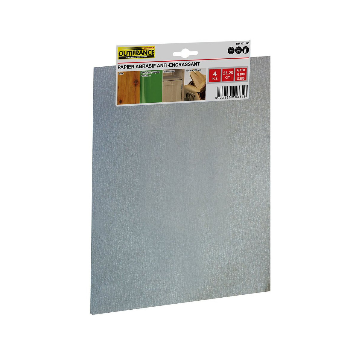 Pour travaux délicats et techniques sur les peintures, vernis, laques, bois et plastiques. Remplace le papier imperméable lorsque l'utilisation d'eau est proscrite. Constitué d'une double couche de résine qui assure l'excellente fixation des grains et remplit les interstices, ce qui empêche la poussière et les copeaux de s'y loger. 4 feuilles 230 x 280 mm. Grain 320.