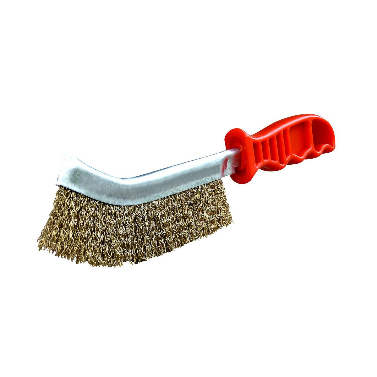 Monture en acier avec poignée ergonomique gainée. Fils souples ondulés. Forme convexe idéale pour travailler dans les recoins difficiles d'accès. Pour nettoyer, décrasser, gratter, ... Longueur totale : 245 mm