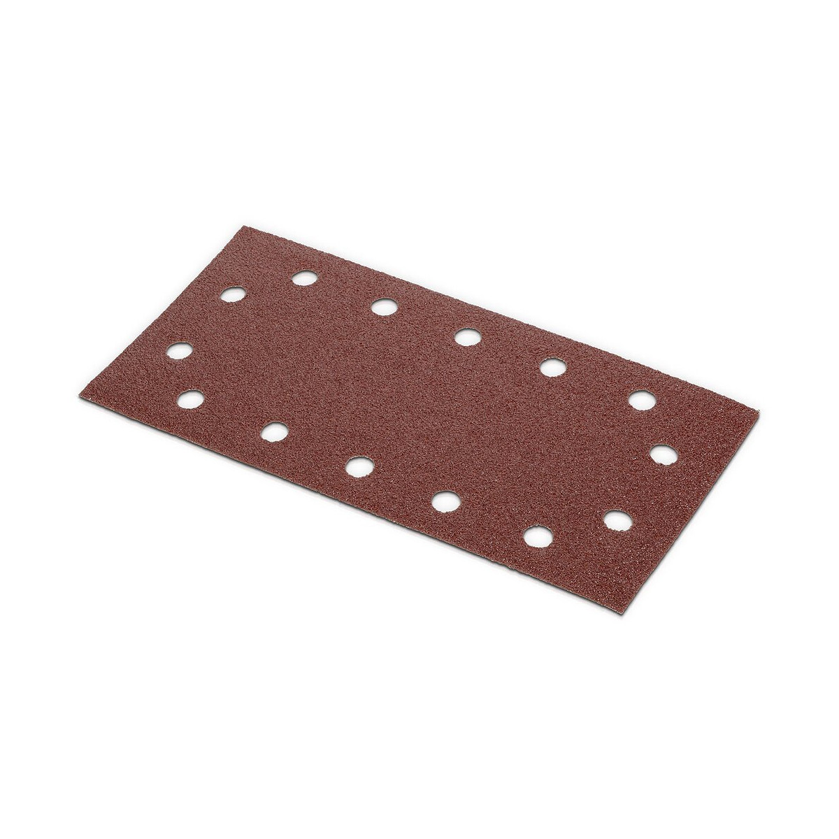 Papier corindon perforé pour ponçage à sec sur la plupart des matériaux. Perforage : 8 trous "en oval" Fixation : auto-aggripante Dimensions : 115 x 230 mm Grain : 120
