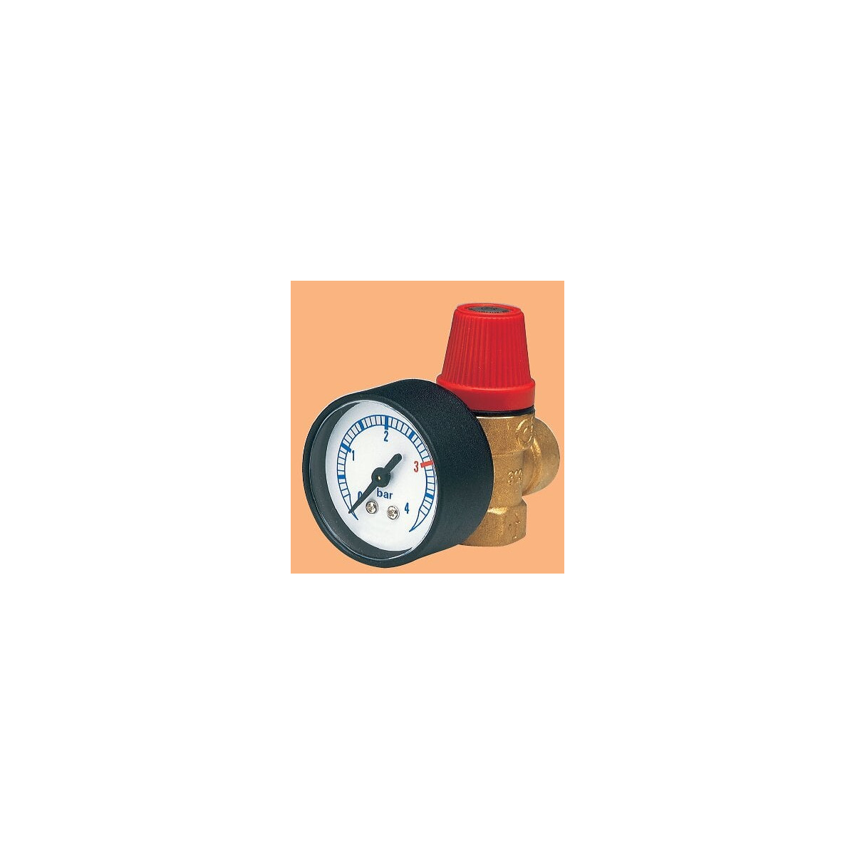 Soupape de sûreté avec manomètre tarée à 3 bars femelle/femelle 15/21. Adapté au circuit de chauffage.