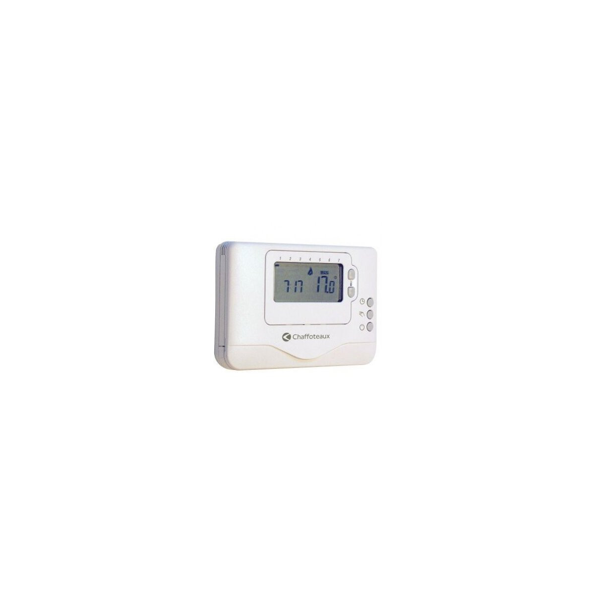 Thermostat d'ambiance programmable hebdomadaire filaire CHAFFOTEAUX Easy Control tout ou rien compatible toutes chaudières. Au coeur de la régulation des solutions chauffage et eau chaude sanitaire Economies d'énergie et confort absolu Commande à distance filaire avec sonde de température intégrée Permet de dialoguer avec la chaudière, les modules hydrauliques et préparateurs solaires Programmation chauffage hebdomadaire ou journalier par plages horaires Régulation possible en fonction de la température extérieure Réglage de la température eau chaude sanitaire
