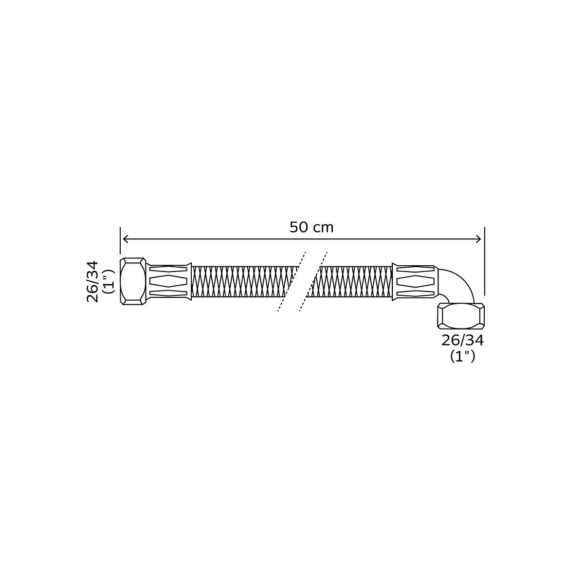 FLEXIB CHAUF DN26 GALVA L500 COUDE FF 1"