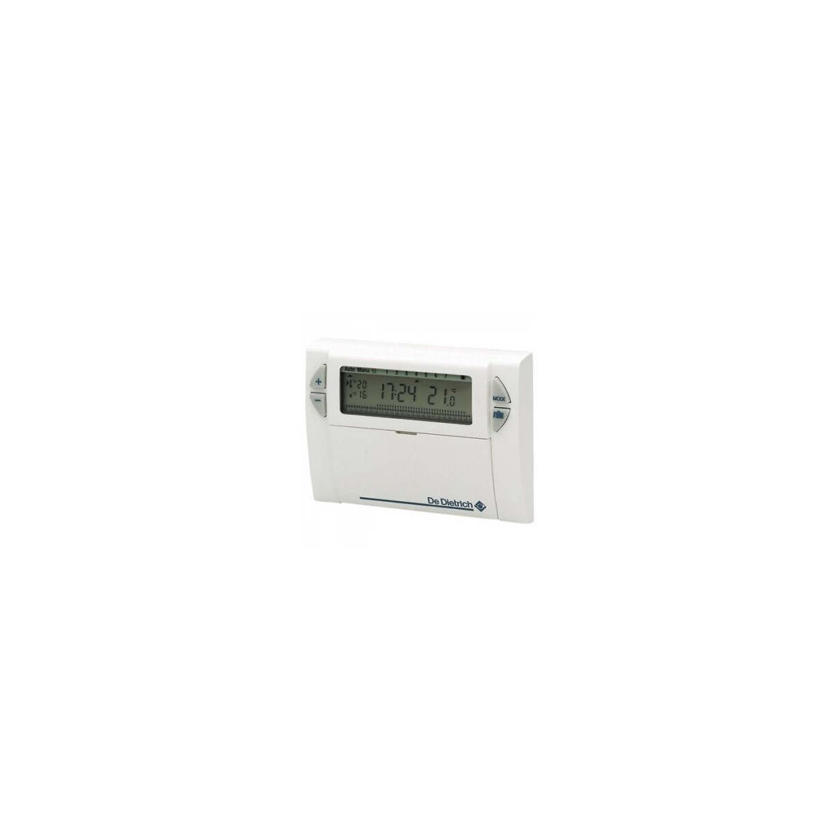 Thermostat d'ambiance DE DIETRICH AD 137 Thermostat d'ambiance FILAIRE programmable compatible pour chaudière Fioul et gaz pour chaudière basse température Assure la régulation et la programmation hebdomadaire du chauffage par action sur le brûleur et selon les trois modes de fonctionnement suivants : - Automatique : commute automatiquement l'installation en mode confort ou réduit de 5 à 30°C (4 programmations au choix) - Permanent : maintient de la température désirée en permanence de 5 à 30°C - Vacances : destiné aux absences de longue durée, maintient la température désirée pour une durée déterminée (de 1 à 99 jours).