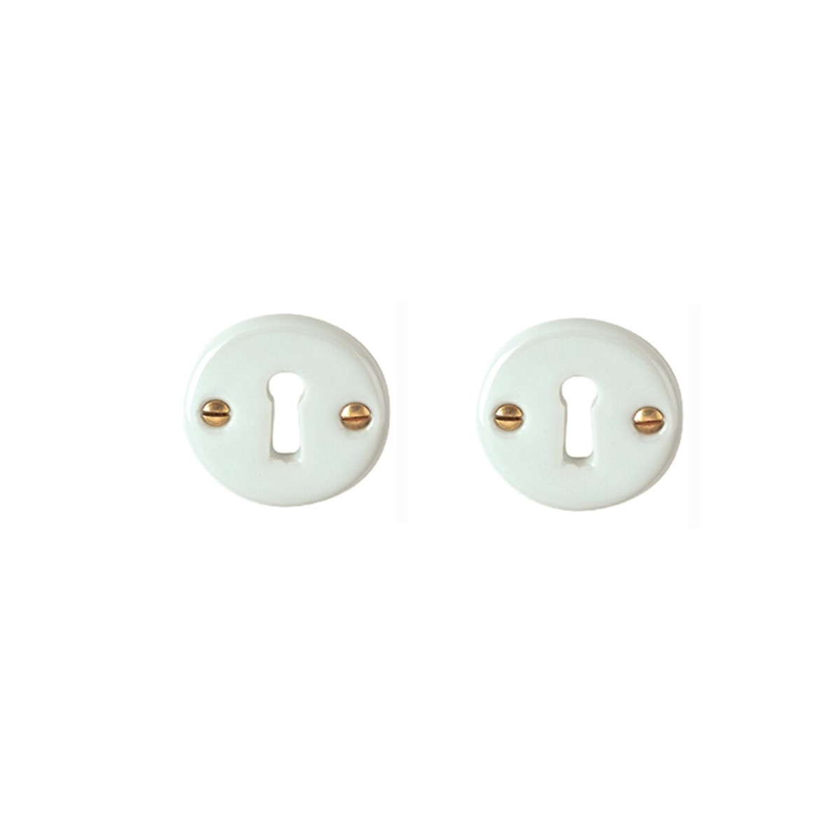 Rosaces à trou de clé en céramique. Coloris : blanc. Visserie fournie. Dimensions : Diamètre 50 mm.Spécifications techniques