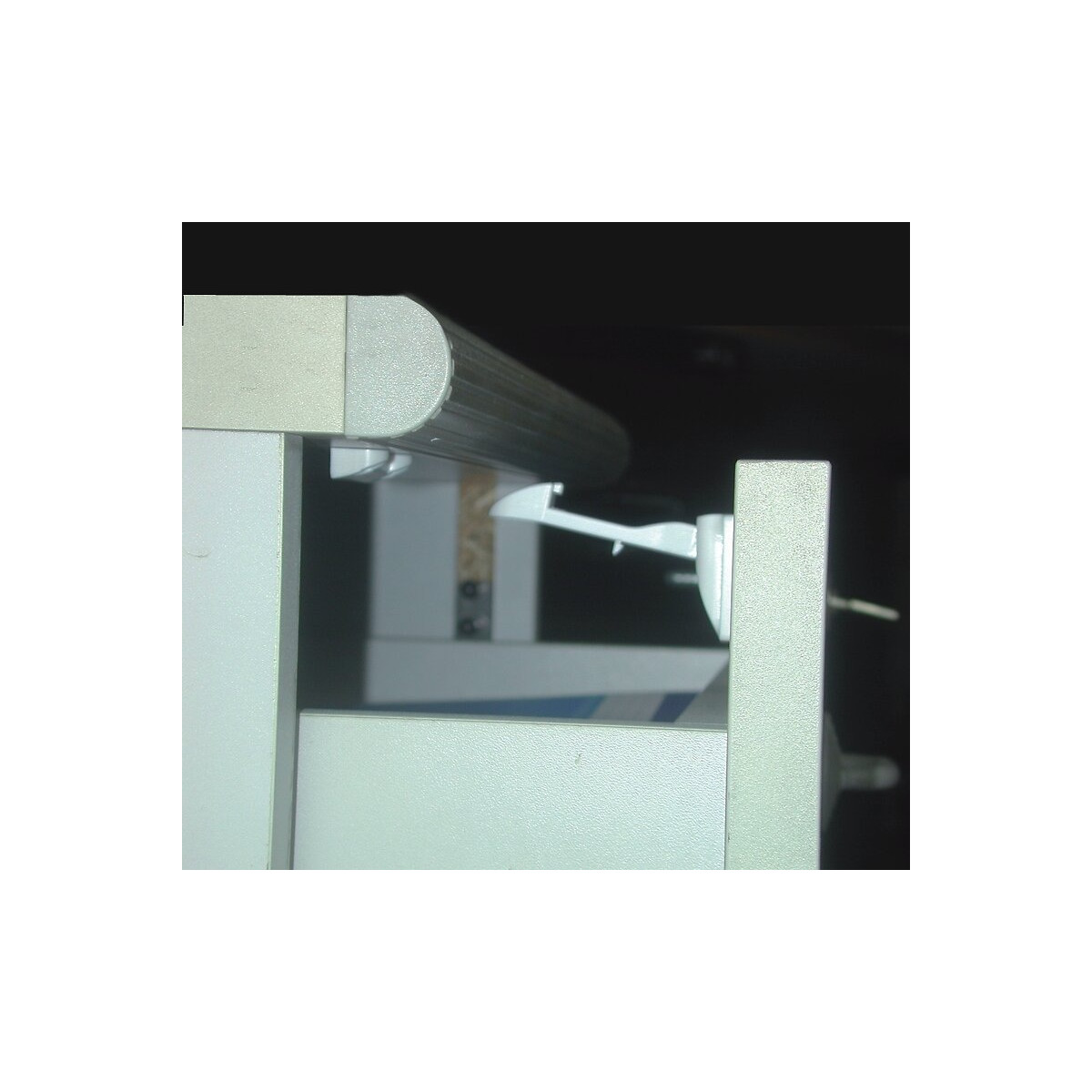 Bloque meuble à ressort plastique blanc longueur 65 mm. Empêche l'ouverture des tiroirs ou des portes.Spécifications techniques
