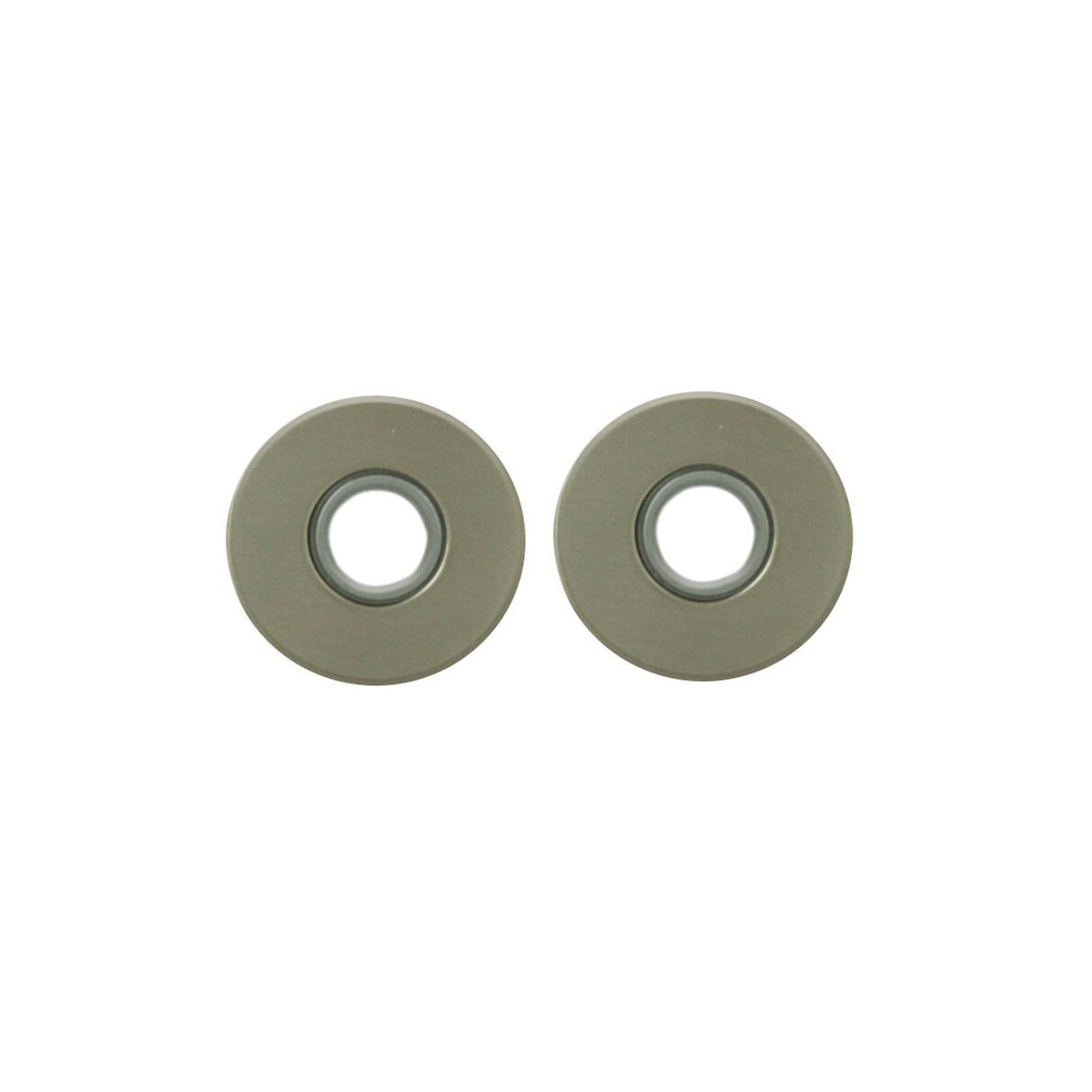 Rosaces en laiton à Bec de Cane. Finition : nickel mat. Visserie fournie. Dimensions : Diamètre 49 mm. Lot de 2 rosaces.Spécifications techniques