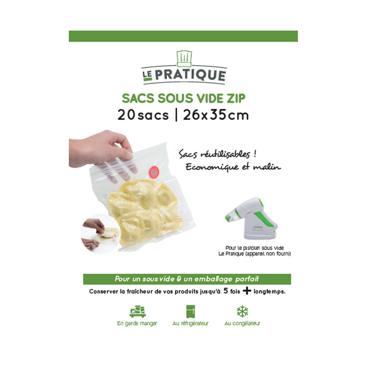 Sacs sous vide gaufres zip à valve et réutilisables 26 x 35 cm (pour pistolet) - 20 sacs