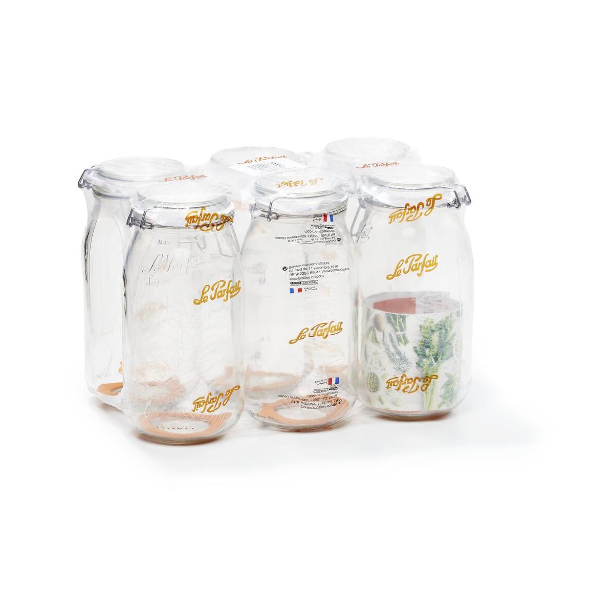 Bocal Le Parfait Super contenance 2 litres diamètre 85 mm équipée d'une rondelle caoutchouc pack 6 terrines.