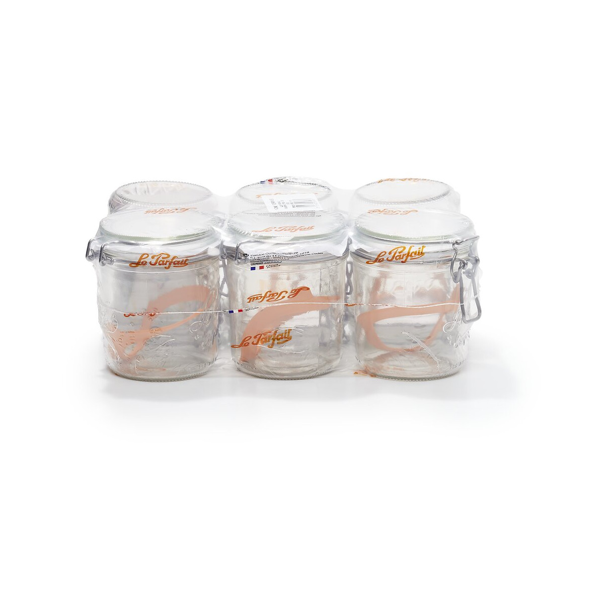 Terrine Le Parfait Super contenance 750 grammes diamètre 100 mm équipée d'une rondelle caoutchouc pack 6 terrines.