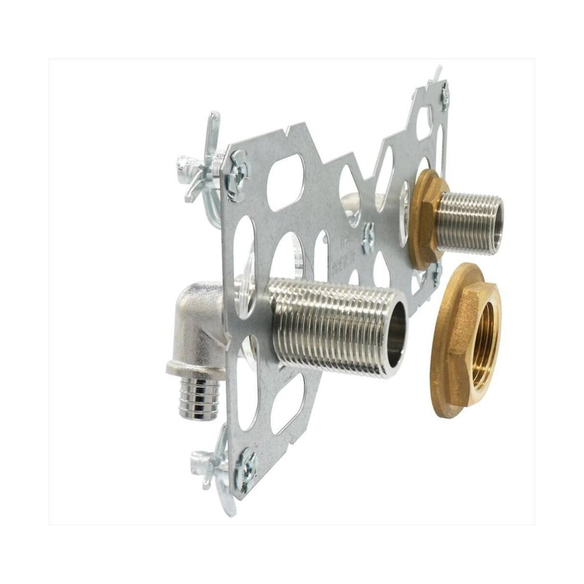 Système breveté garantissant fiabilité, rapidité et facilité de pose / Raccordement direct d'un mitigeur grâce aux sorties mâles 3/4 (20x27) / Entraxe standard prédéfini de 150mm pour supprimer les risques d'erreurs / Platine métallique anti-arrachement / Réglage du raccord en profondeur grâce au système d'encoches / Installation PER entièrement visitable Cette platine de raccordement Easy Fix permet d'aménager facilement une sortie d'alimentation en eau pour une douche ou une baignoire. L'installation est encastrée mais reste visitable à tout moment après la pose du revêtement mural. Filetage de l'embout (en mm): 20 x 27 Finition du produit: Chromé Nombre de pièces: 1 Norme ou label: ACS Pour alimenter: Baignoire / douche Matière du raccord: Laiton Type d'embout de sortie V3: M 20 x 27 Type d'embout d'entrée V3: D.16 Matière du tube de destination: PER Raccordement de l'embout: Mâle Diamètre du tube d'alimentation (en mm): Entre 16 et 19 mm Produit emballé : hauteur (en cm): 17.9 Produit emballé : largeur (en cm): 26 Produit emballé : profondeur (en cm): 8.4 Produit emballé : poids (en kg): 0.736 Indication du geste de tri (triman): Nos produits et emballages peuvent faire l'objet d'une consigne de tri. Pour en savoir plus : www.quefairedemesdechets.fr