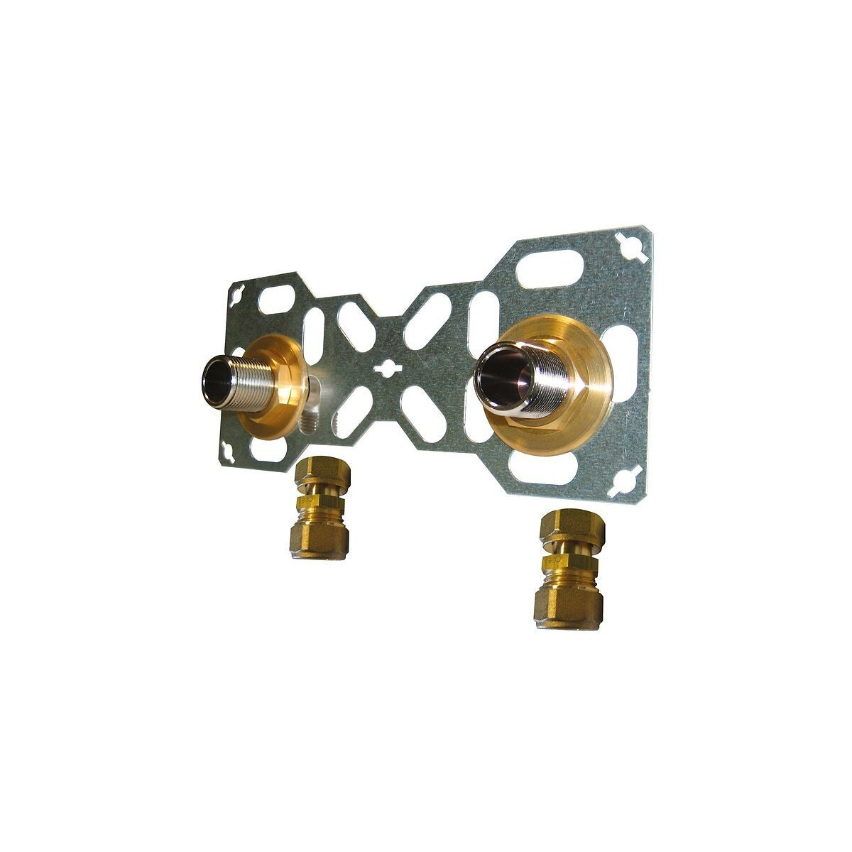 Système breveté garantissant fiabilité, rapidité et facilité de pose / Raccordement direct d'un mitigeur grâce aux sorties mâles 3/4 (20x27) / Entraxe standard prédéfini de 150mm pour supprimer les risques d'erreurs / Platine métallique anti-arrachement / Réglage du raccord en profondeur grâce au système d'encoches / Installation PER entièrement visitable Cette platine de raccordement Easy Fix permet d'aménager facilement une sortie d'alimentation en eau pour une douche ou une baignoire. L'installation est encastrée mais reste visitable à tout moment après la pose du revêtement mural. Filetage de l'embout (en mm): 20 x 27 Finition du produit: Chromé Nombre de pièces: 1 Norme ou label: ACS Pour alimenter: Baignoire / douche Matière du raccord: Laiton Type d'embout de sortie V3: M 20 x 27 Type d'embout d'entrée V3: D.16 Matière du tube de destination: PER Raccordement de l'embout: Mâle Diamètre du tube d'alimentation (en mm): Entre 16 et 19 mm Produit emballé : hauteur (en cm): 17.8 Produit emballé : largeur (en cm): 26 Produit emballé : profondeur (en cm): 8.3 Produit emballé : poids (en kg): 0.78 Indication du geste de tri (triman): Nos produits et emballages peuvent faire l'objet d'une consigne de tri. Pour en savoir plus : www.quefairedemesdechets.fr