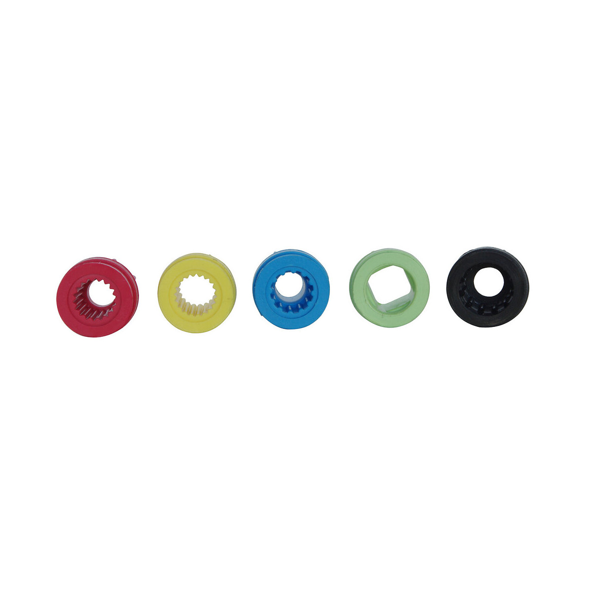 Sur un mélangeur, cette pièce intermédiaire se situe entre la tête et le croisillon de la robinetterie. Le kit est composé de 5 entrainreurs compatibles avec les diffférents modèles de robinetterie existants. Livré avec 2 vis de montage.