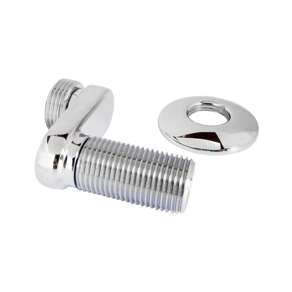 Ce raccord permet le rattrapage d'entraxe d'une robinetterie sanitaire et d'avoir une pose bien horizontale. La rosace habille le contour de la sortie d'un robinet ou d'une tuyauterie et de cacher les éclats de perçage éventuels. Livré avec rosace de diamètre 22mm. Raccord contre-coudé en finition chromé avec entrée Mâle 15/21 et sortie Mâle 20/27.