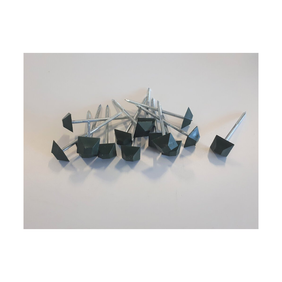 Blister de 50 pointes bitumes. Coloris vert. Usage : Fixation des tôles Ondobitume CE.