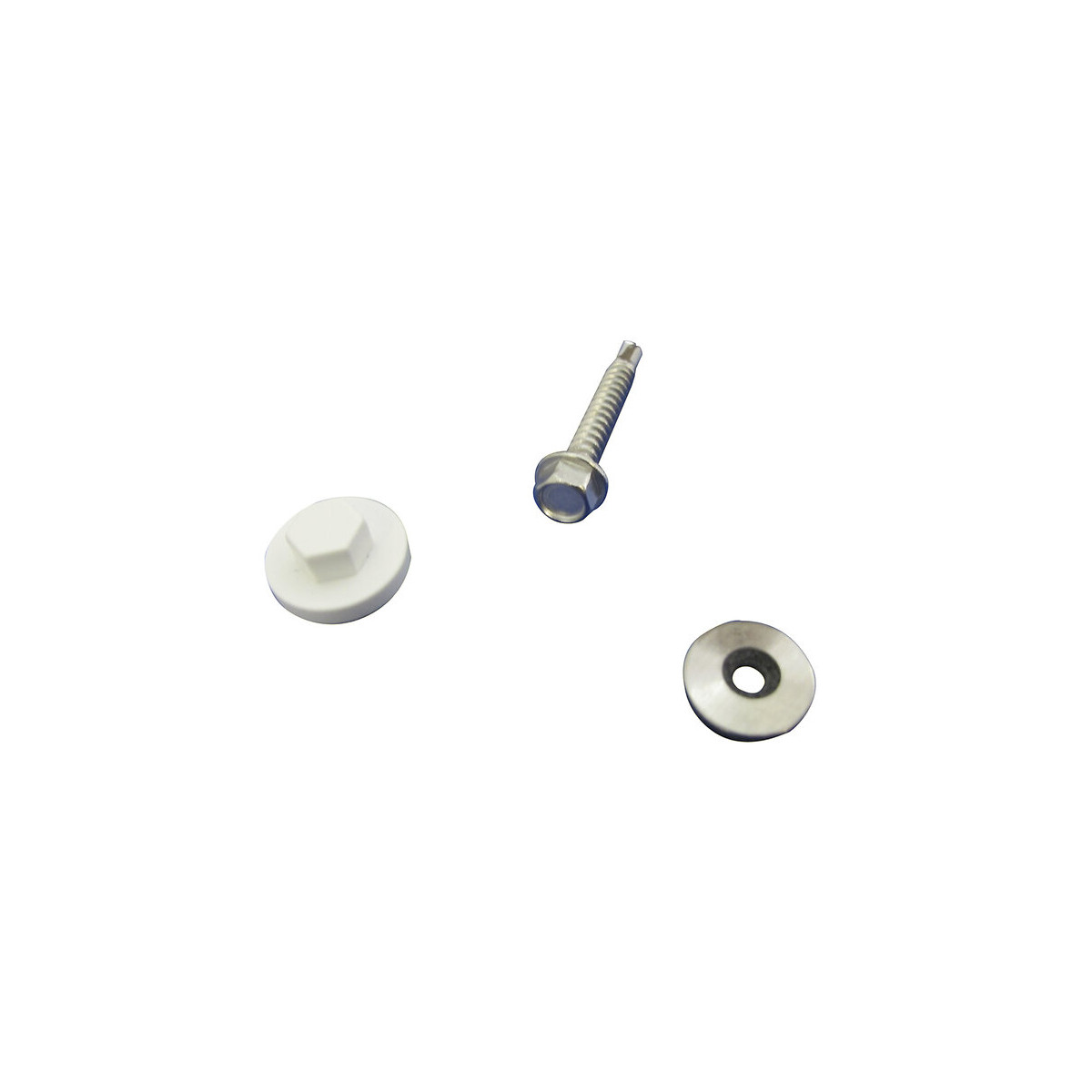 Kit de fixation pour profil porteur pour plaques polycarbonate alvéolaires de 16 et 32 mm. Coloris : blanc. Usage : fixation des capots des profils de jonction et bordure. Kit composé de 40 vis + 40 capuchons + 40 rondelles. Fixations posées à 10cm du bord du profil puis tous les 30cm.