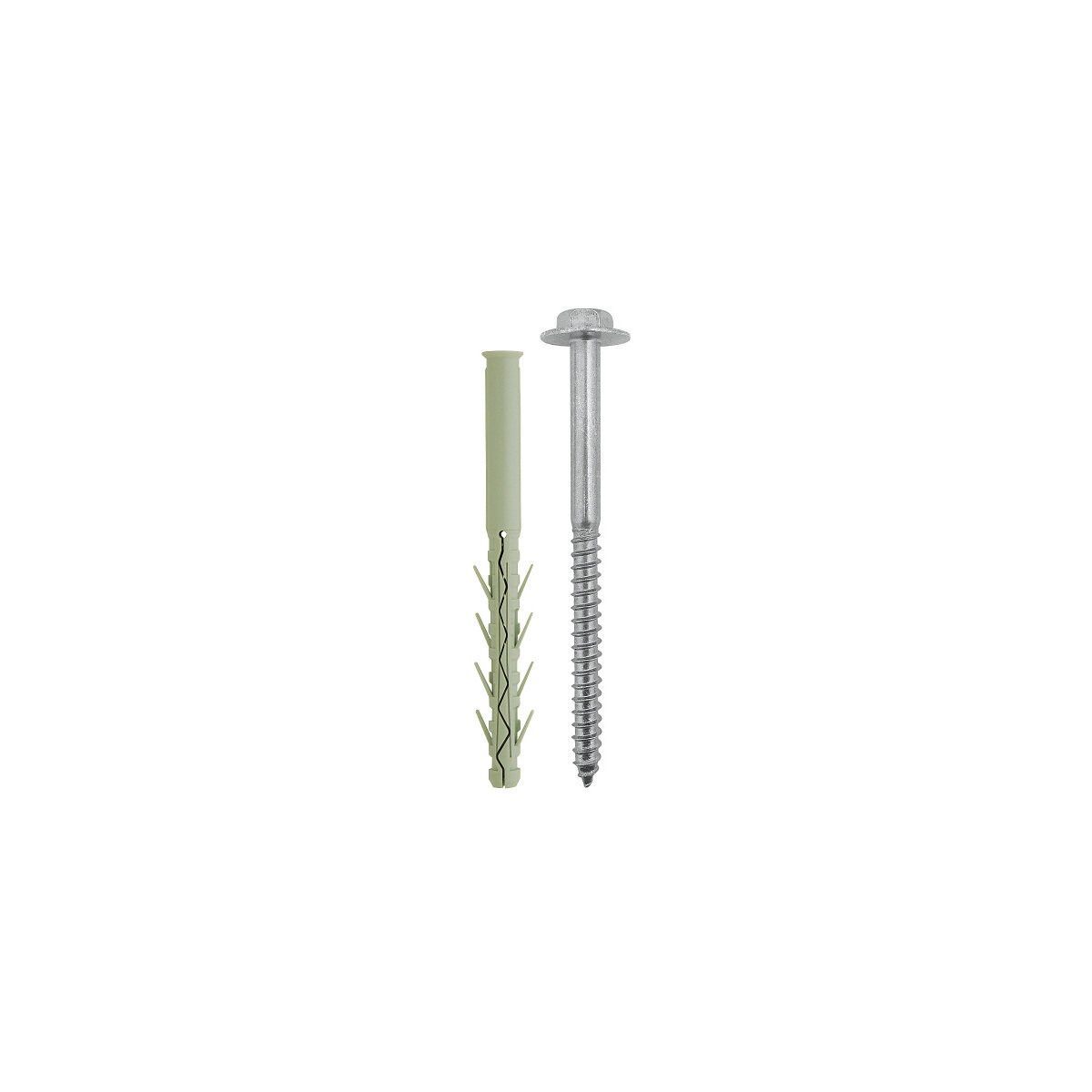 Chevilles multimatériaux en nylon PA6 + tirefonds à tête hexagonale, vis en acier zingué. Pour usage spécial charpente. Butée : 65 mm. Collerette de la vis : 19 mm. Blocage anti-rotation avec ses ailettes. Dimensions cheville : Diamètre 16 mm x Longueur 160 mm. Dimensions tirefonds : Diamètre 12 mm x Longueur 165 mm. Lot de 4 chevilles et tirefonds.