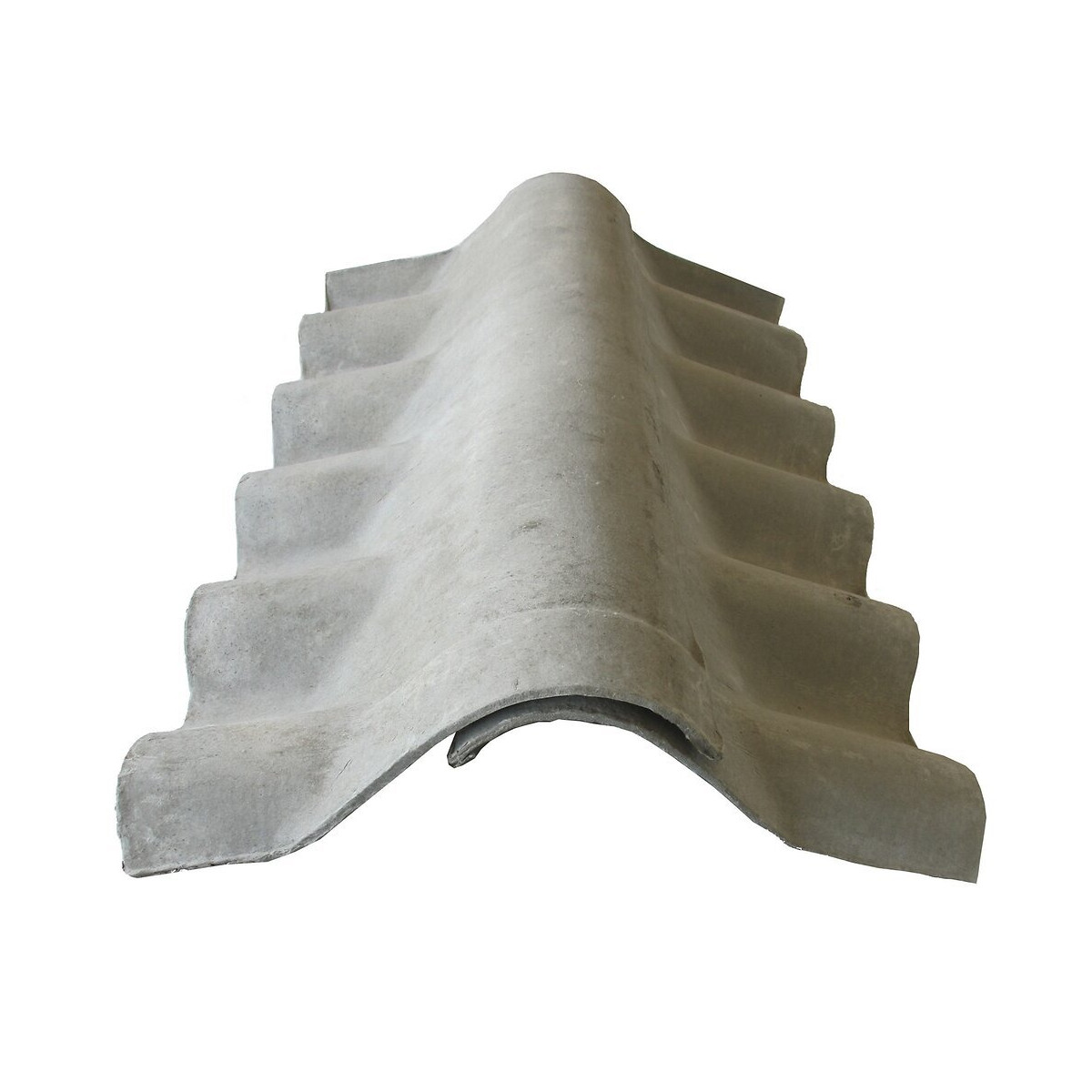 Faitière fibrociment. Accessoire de raccordement entre deux plaques au niveau du sommet du toit. Dimensions : longueur du canal : 96 cm - longueur partie ondulée : 92 cm - largeur d'aile : 23 cm.