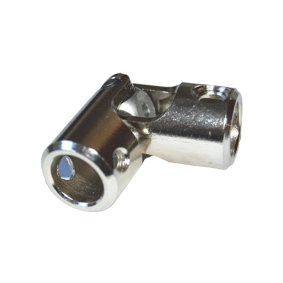 Genouillère ronde en acier. Coloris : blanc. Dimensions : Diamètre 12 mm. 6 pans de 10 mm. 2 vis TF M5 18 mm. Entraxe 50 mm.
