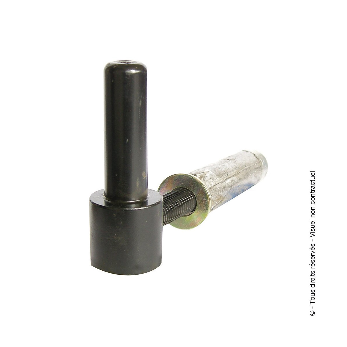 Gond à visser + cheville métal 14 mm Longueur 100 mm noir. Les 4 segments évitent la rotation de la cheville et reforcent la résistance à l'arrachement.