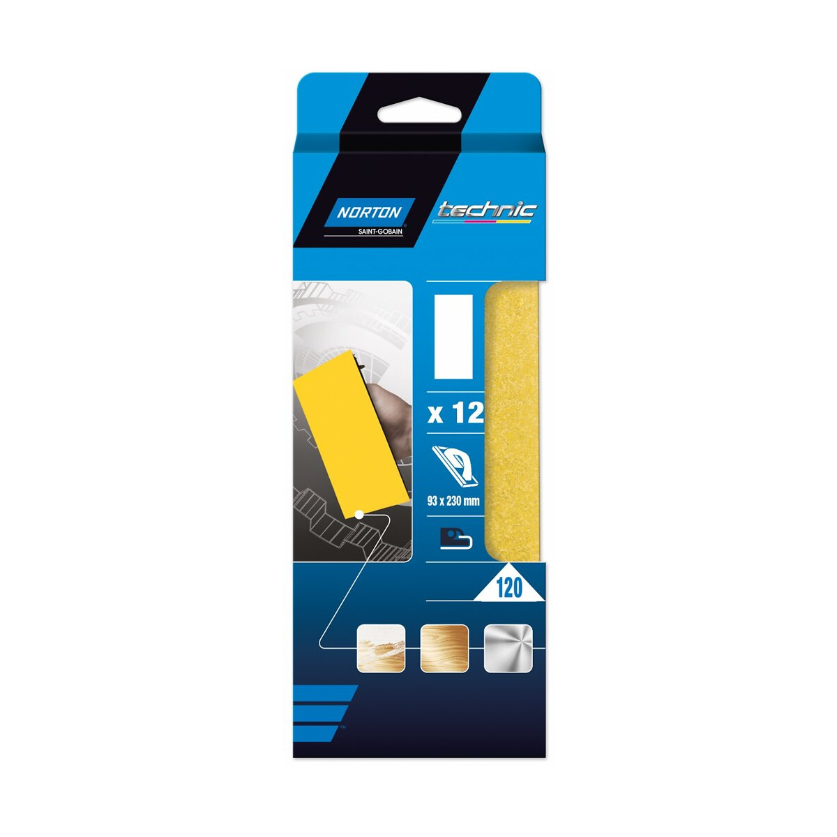 Patins conçus pour la cale petite surface et angle Norton Technic 93x20mm. Le conditionnement par 12 est économique et idéal pour tous vos travaux de ponçage courant à intensif. Dimensions : 93x230mm Grain 120 Pour la finition des surfaces brutes ou peintes, en métal ou en bois. Fixation à pinces.Spécifications techniques