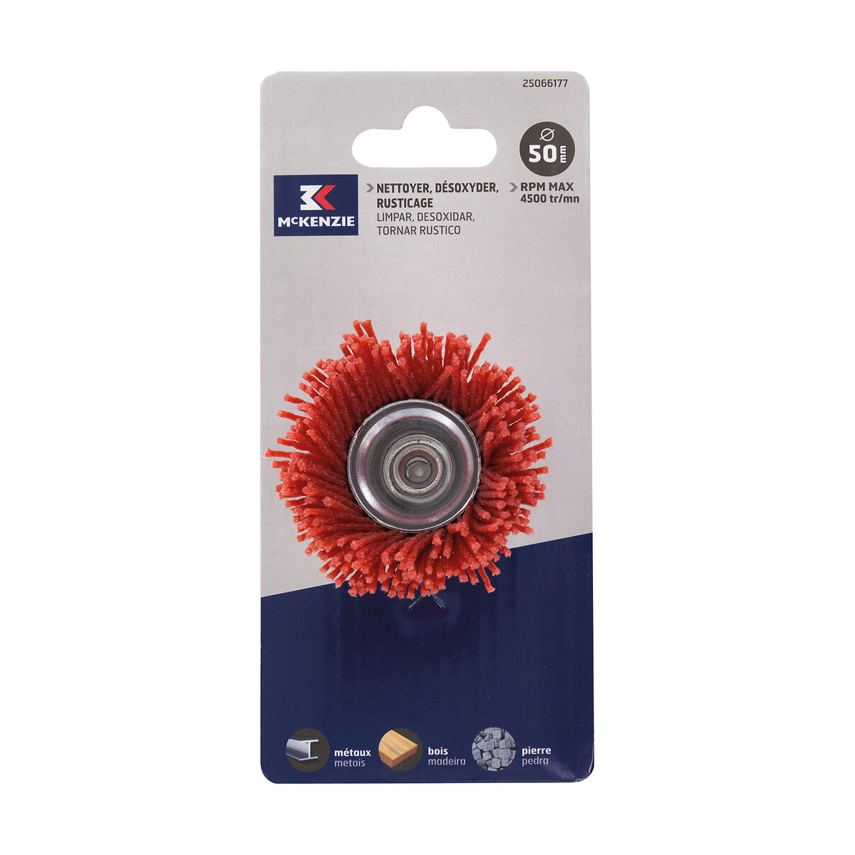 Brosse soucoupe sur tige pour perceuse diamètre 50 mm fil nylon diamètre 1,8mm Tige diamètre 6x25 pour nettoyer/désoxyder/rusticage pour acier/cuivre/pierre/bois.Spécifications techniques