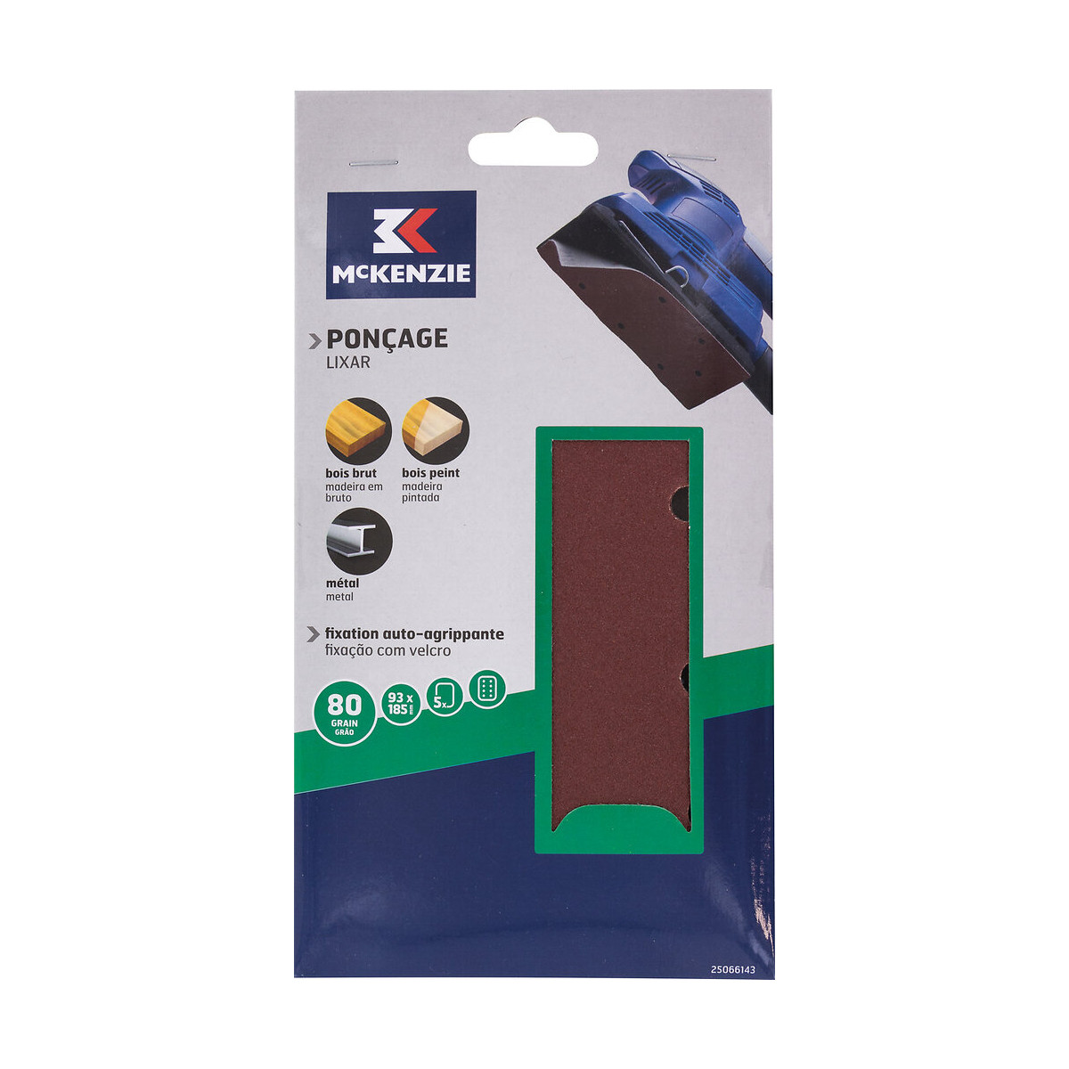 Patins auto agrippant x5 papier renforcé corindon 93x185, perforés 8 trous parallèles pour ponceuse vibrante avec aspiration, pour bois / peintures / métal / vernis, grain 48 pour ponçage.Spécifications techniques