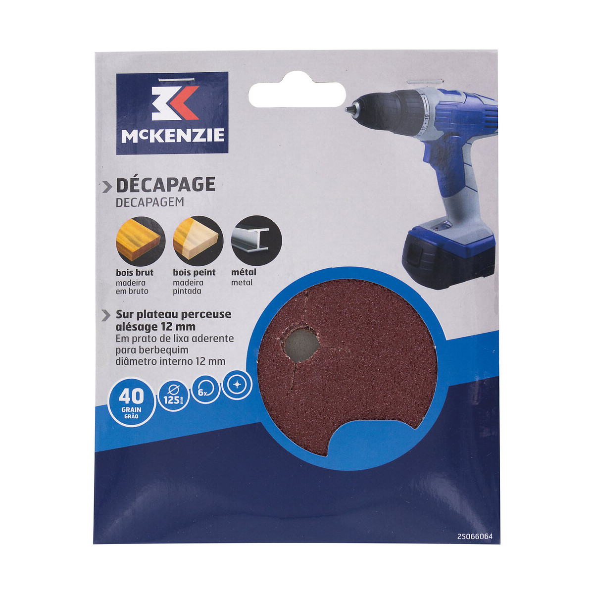 Disques pour plateau perceuse, alésage 12mm, fixation étoile, D.125, grain 40 pour décaper, pour le bois et métal, par 6.Spécifications techniques