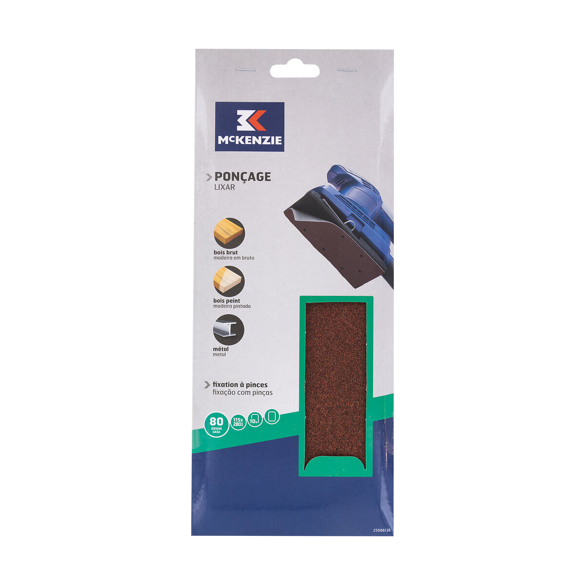 Patins abrasifs non perforés 115x280 grain 80 papier renforcé corindon fixation pince pour ponceuse vibrante, pour bois / peintures / métal, ponçage, par 10.Spécifications techniques