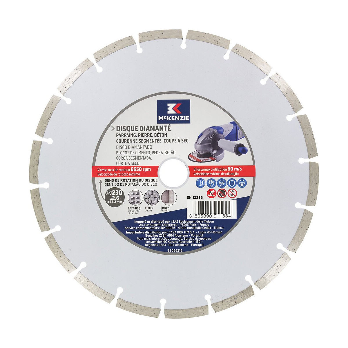 Ce disque diamant sera un élément essentiel pour tous vos travaux de découpe sur béton, pierre ou parpaing. Dotée d'une grande résistance et longévité, sa composition de qualité vous garantit un résultat optimal dans tous vos travaux. Grâce à sa structure précise, il se met en place très facilement et se fixe de manière stable sans risque de se déloger durant son utilisation. Sa prise en main ergonomique permet de le manier aisément sans aucune difficulté. La qualité de sa composition vous permettra d'effectuer des coupes nettes en toute facilité et de manière sécurisée. Application : béton, pierre, parpaing Diamètre : 230 mm Alésage : 22.2 mmSpécifications techniques