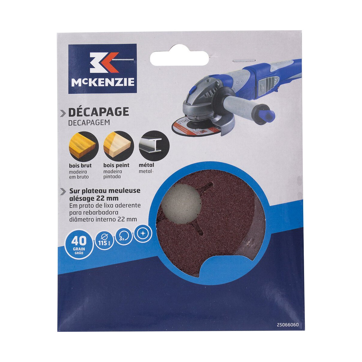 Disques pour plateau meuleuse, alésage 22mm, fixation étoile, D.115, grain 40 pour décaper, pour le bois et métal, par 3.Spécifications techniques