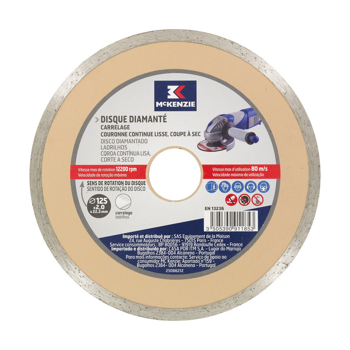 Accessoire incontournable, ce disque diamant sera un accessoire très pratique pour tous vos travaux de découpe. Disposant d'une résistance et d'une durabilité optimales grâce à sa composition, ce disque pourra vous accompagner tout au long de vos travaux. Sa structure de qualité vous permettra d'effectuer des coupes propres et précises en toute facilité et de manière sécurisée. Application : coupe à sec carrelage et céramique Diamètre : 125 mm Alésage : 22.2 mm Vitesse maximale : 12200 tr/minSpécifications techniques