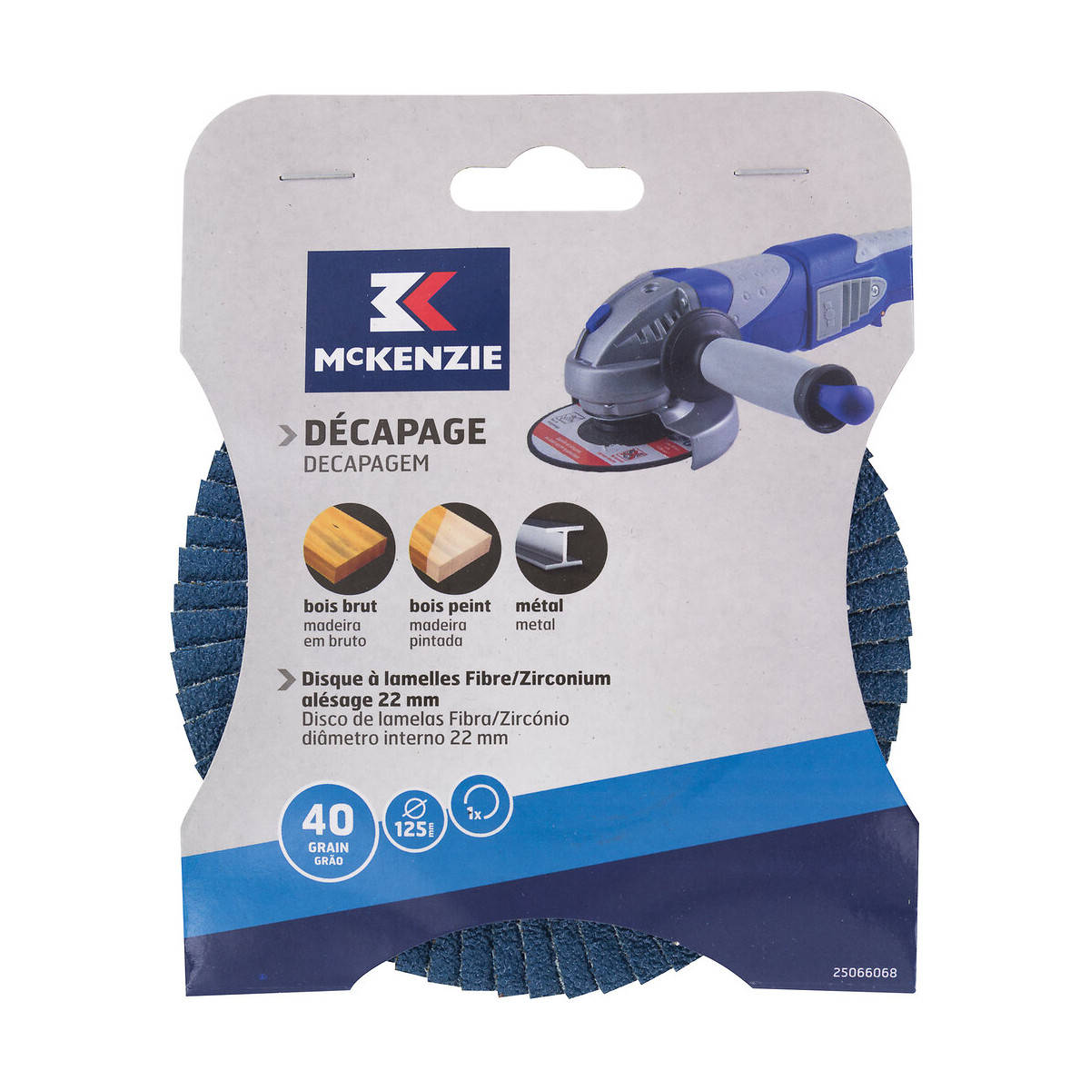 Disque à lamelles en fibre zirconium pour meuleuse diamètre 125 tous modèles avec alésage central 22 mm grain 40 Bois / métaux / peintures longue durée de vie sans échauffement, décapage.Spécifications techniques
