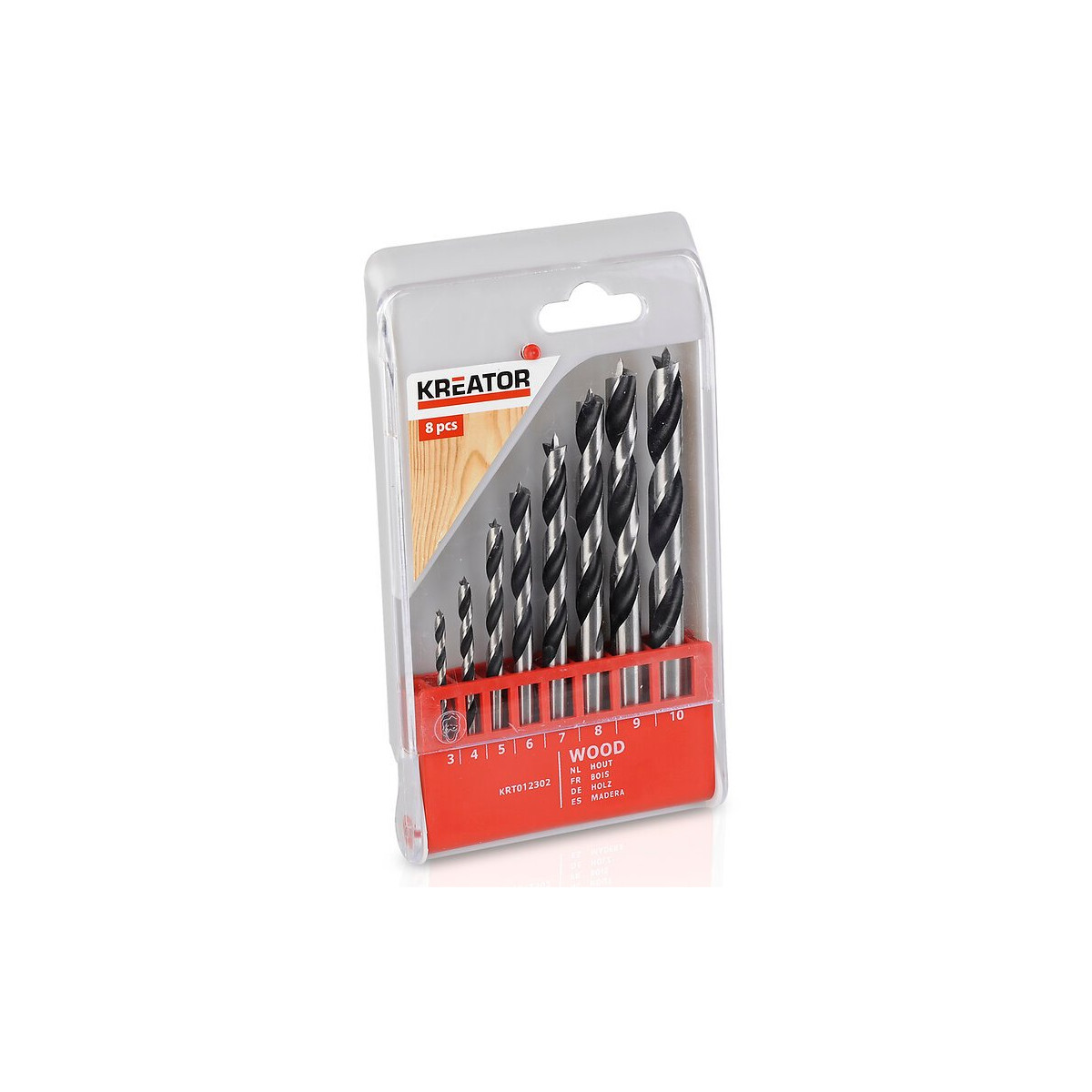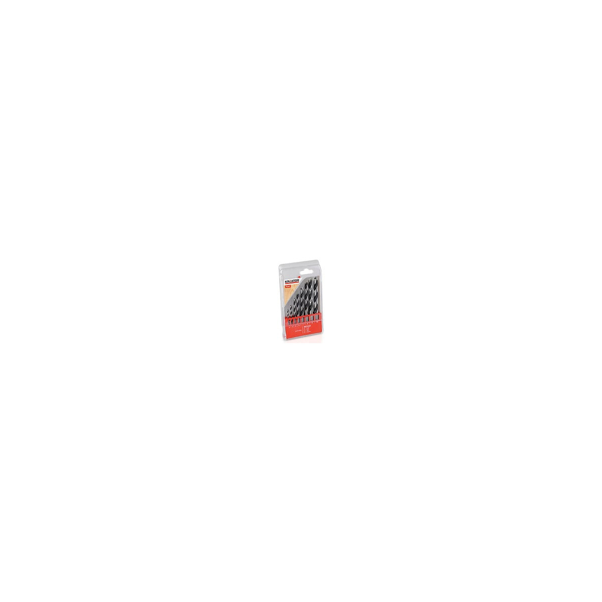 Coffret de 8 mèches hélicoïdales avec pointe de centrage et deux traçoirs. Emmanchement cylindrique. Composition : Ø 3 / 4 / 5 / 6 / 7 / 8 / 9 / 10 mm
