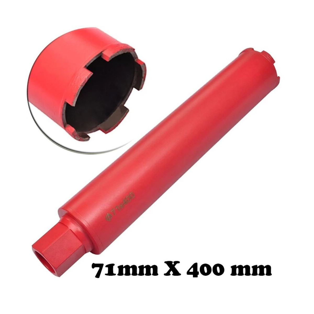 Couronne diamant professionnelle pour le forage à sec et humide. De haute qualité, elle permet une vitesse de forage élevée et une longue durée de vie de cet outil. Idéalement conçu pour les carotteuses électriques pour le forage dans le granit, la roche dure, le béton ou le béton armé. De plus notre site propose également des couronnes diamants d'autres tailles pour répondre aux besoins de forage différentes. La livraison comprend une couronne à diamants pour carotteuse de la bonne taille que vous voulez! Dimensions: 71mm X 400 mm Hauteur des dents: env. 7 mm Raccord fileté pour carotteuse: 1 1/4"