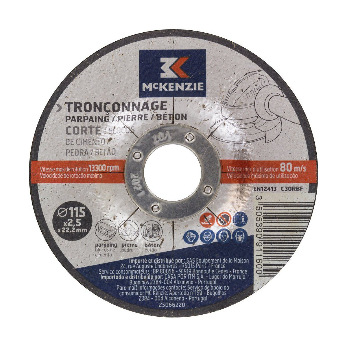 Disque à tronçonner tous matériaux D.115 mm épaisseur : 2,5mm alésage : 22,2mm, RPM maxi 13300.Spécifications techniques
