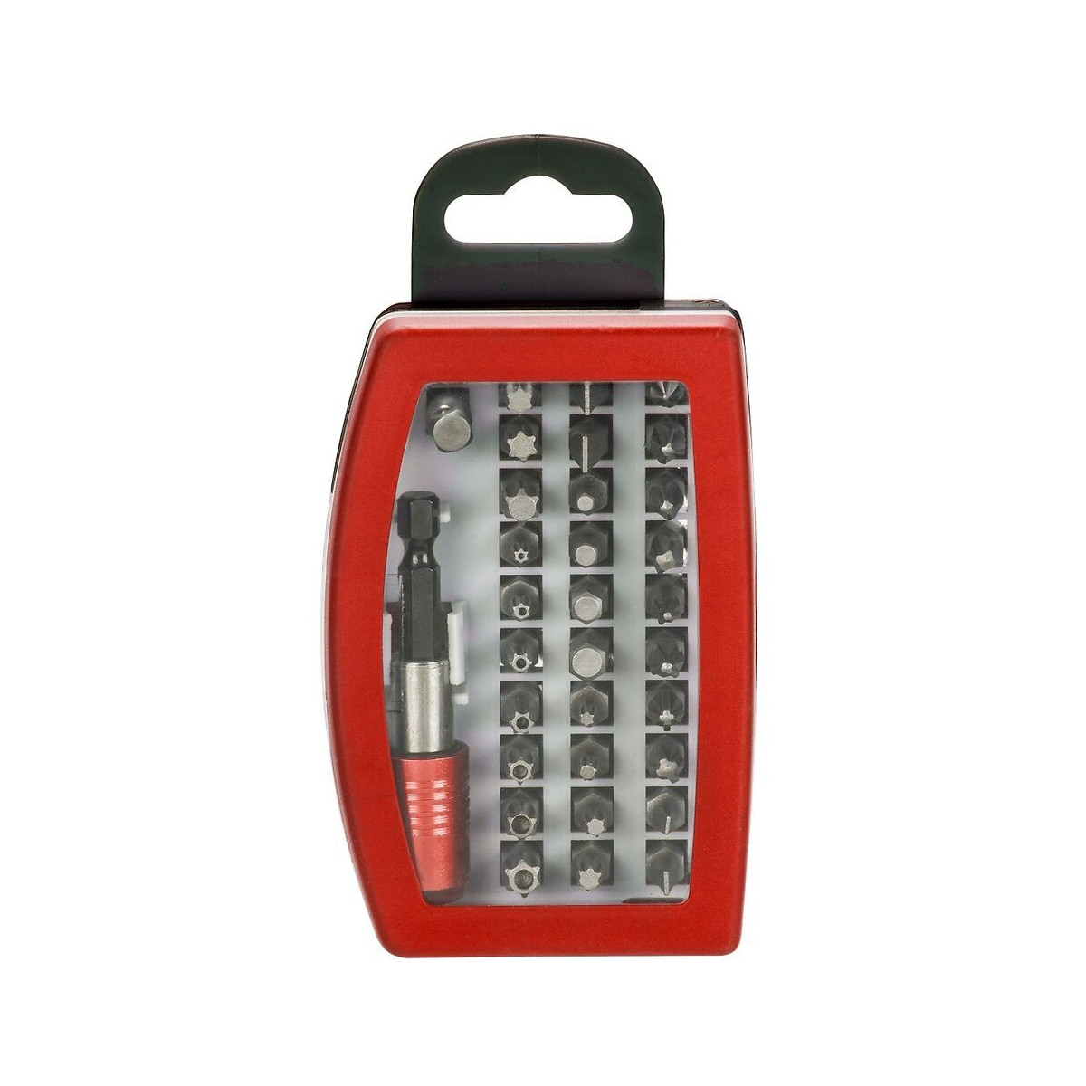 Coffret de 32 embouts de vissage Embouts en acier chrome-vanadium 30 embouts Entraînement 1/4" hexagonal selon ISO 1173, C 6.3, 25 mm 1 mandrin à serrage rapide 1 adaptateur de douille Dans un coffret en plastique de qualité supérieure avec attache de ceinture pratique