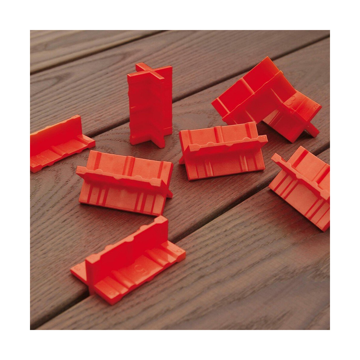 Espaceur de lame de terrasse en plastique solide pour 4 largeurs de joints différentes. Garantit une distance régulière entre les lames de terrasse à visser. Utile pour la pose de terrasse en bois composite. En effet, la dilatation du bois composite dans le sens de la longueur est due aux différences de températures. Chaque fabricant préconise un écartement minimal entre les extrémités de 2 lames pour prévenir ces dilatations. Positionnez les espaceurs en bout de lames pour assurer l'écartement préconisé par le fabricant. Largeur (en mm): 110 Longueur (en mm): 0.08 Matière principale: 100% plastique Couleur: rouge Produit emballé : hauteur (en cm): 21.6 Produit emballé : largeur (en cm): 11.3 Produit emballé : profondeur (en cm): 5.8 Produit emballé : poids (en kg): 0.098 Indication du geste de tri (triman): Non