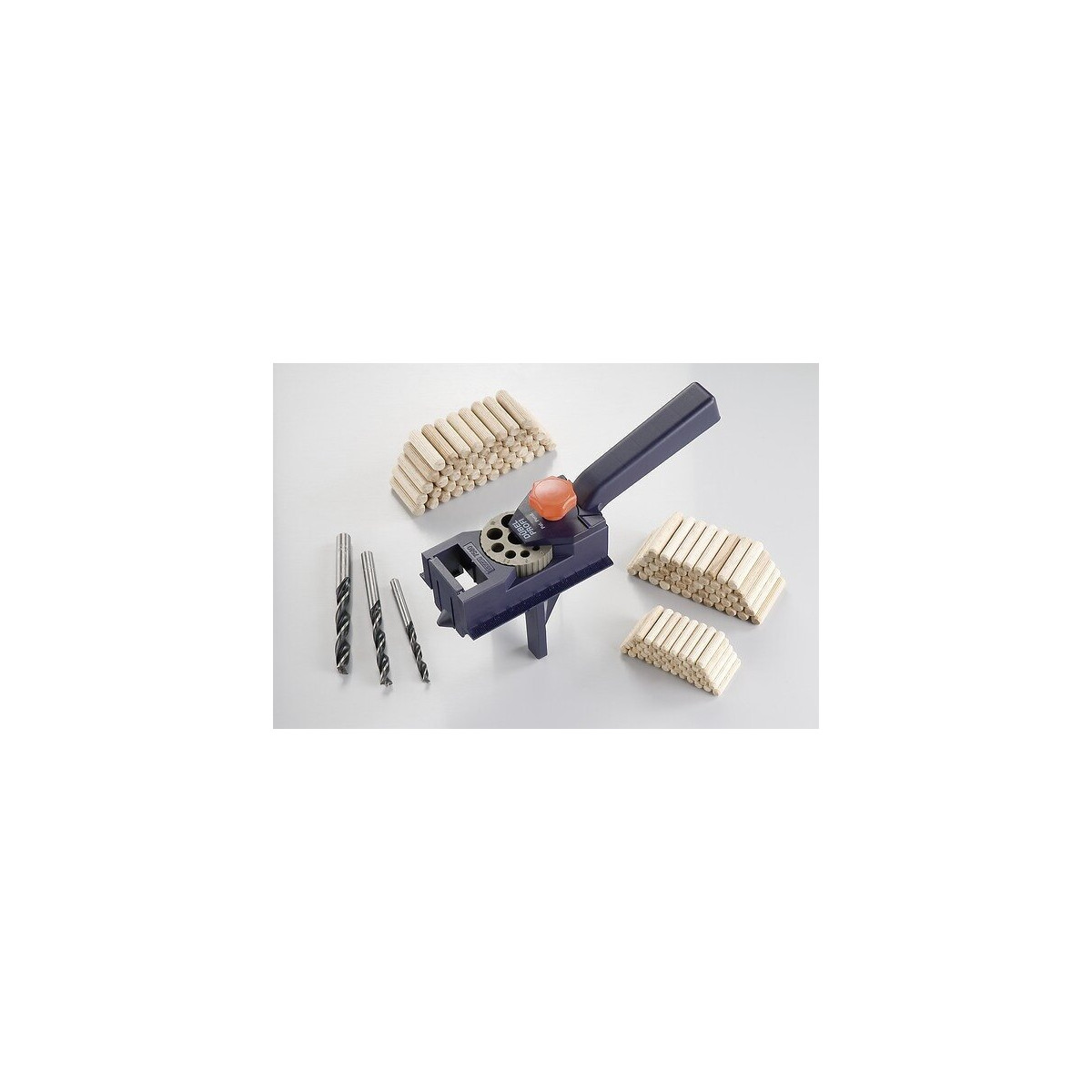 Gabarit de perçage et chevillage DÜBELPROFI, kit complet cheville bois, mèches à bois CV et colle. Cet article comprend: 1 gabarit de perçage et chevillage 150 chevilles à bois 3 mèches à bois