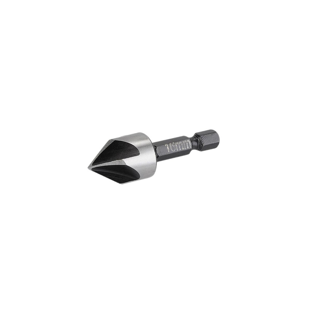 Fraises à 90°. Permettent d’évaser l’entrée d’un trou pour qu’il s’adapte à la forme conique de la tête d’une vis. Emmanchement hexagonal. Diamètre : 13 mm
