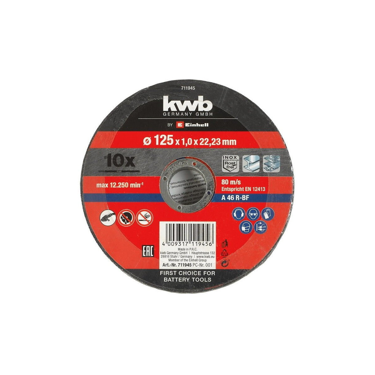 Pour meuleuses d’angle, meuleuses d’angle sans fil ou meuleuses à tronçonner de différentes marques de dimensions Ø 125x1,0 mm et alésage 22,23 mm Extra fin pour une perte de matériau minimale Idéal pour découper de tôles, tubes, métaux et de l’acier inoxydable à un régime max. de 12 250 tr/min Adapté à une vitesse circonférentielle de 80 m/sSpécifications techniques