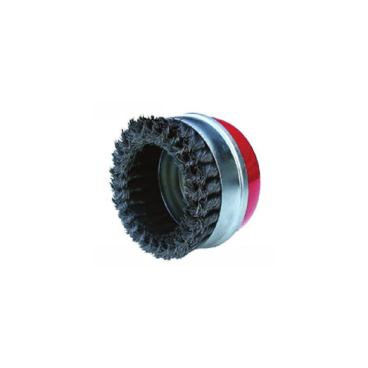 Brosse métallique rotative Ø 100 mm à fils torsadés. Montage sur meuleuses par écrou M14.