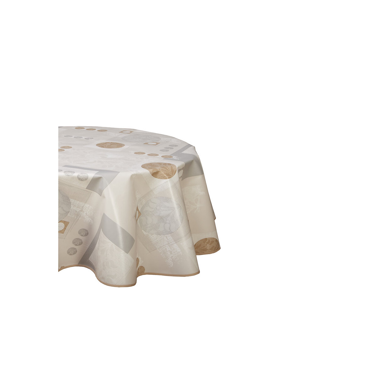 Nappe en toile cirée. Forme : ovale. Finition : biais. Dimensions : L.230 x l.150 cm. Modèle : Loudéac écru.Spécifications techniques