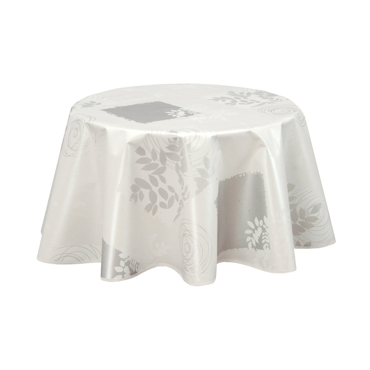 Nappe en toile cirée. Forme : rond. Finition : biais. Dimensions : diamètre 150 cm. Modèle : Véra blanc.Spécifications techniques