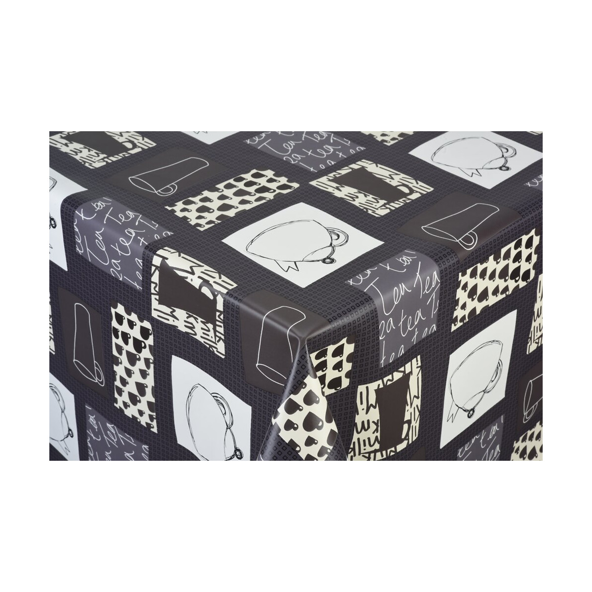 toile ciree cup tea anthracite au metre