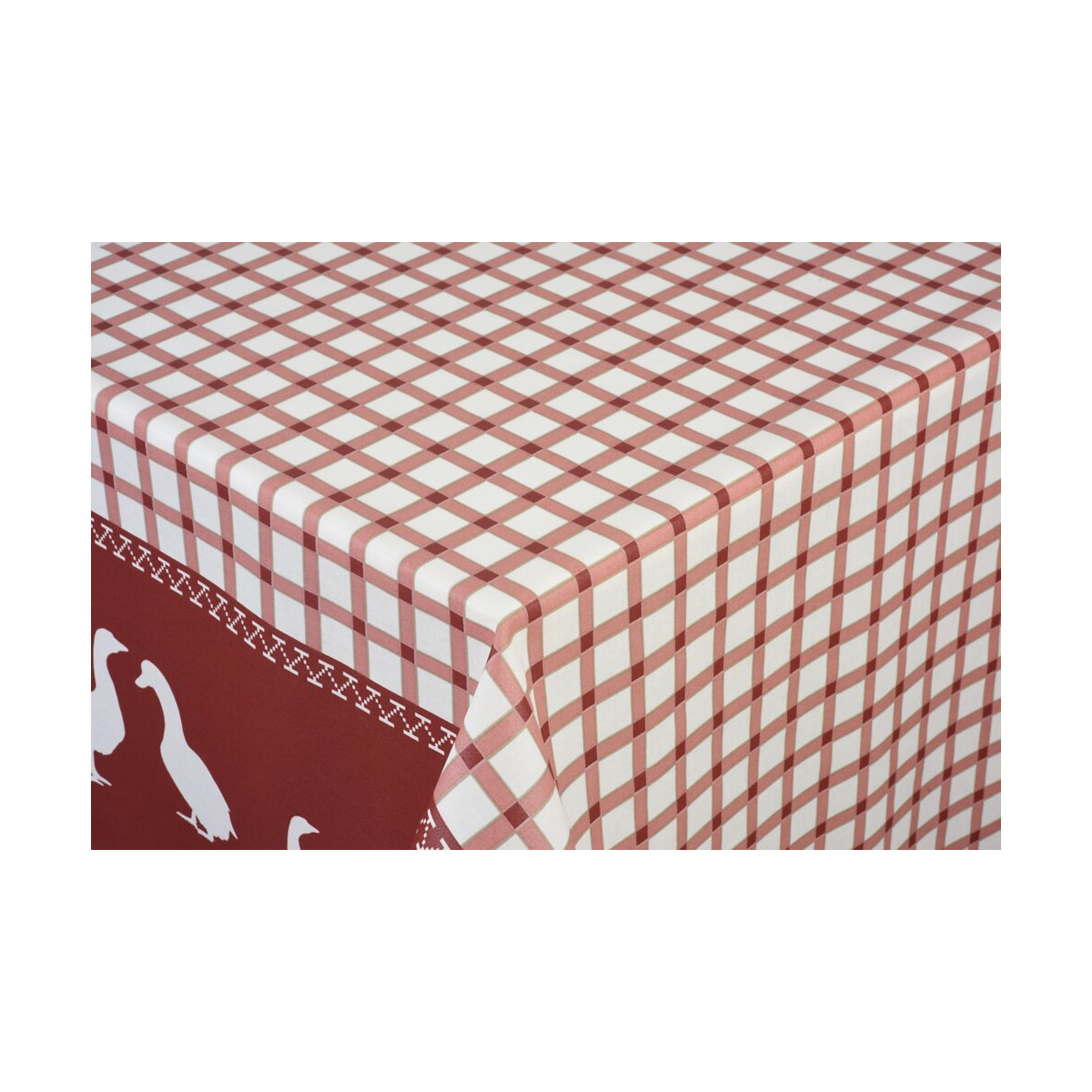 nappe coton enduit à la coupe motif imprimé oie bordeaux 1,4x15m résistante à l'eau et aux tâches grace à sa double enduction acrylique