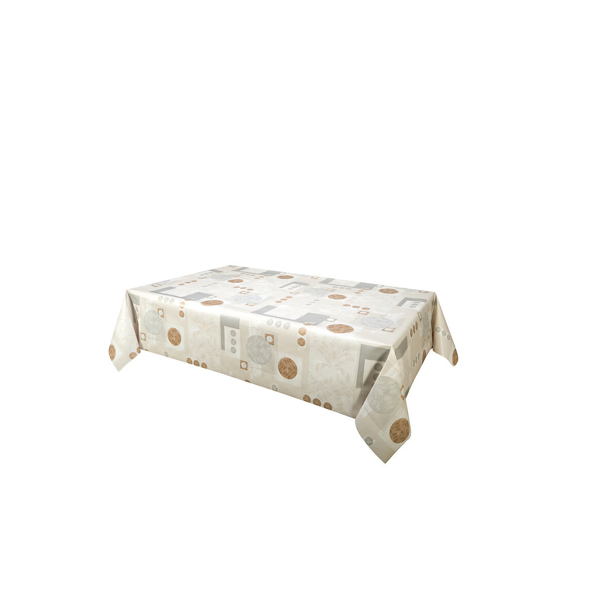 Nappe en toile cirée. Forme : rectangle. Finition : biais. Dimensions : L.160 x l.140 cm. Modèle : Loudéac écru.Spécifications techniques