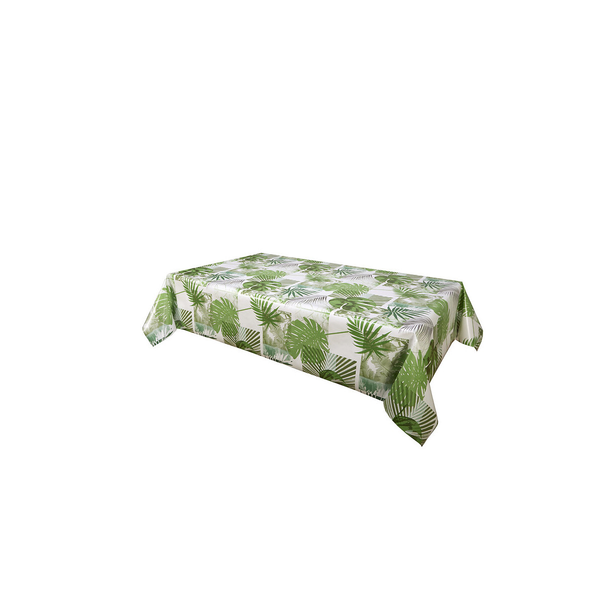 Nappe en toile cirée. Forme : rectangle. Finition : biais. Dimensions : L.160 x l.140 cm. Modèle : Banaphy vert.Spécifications techniques